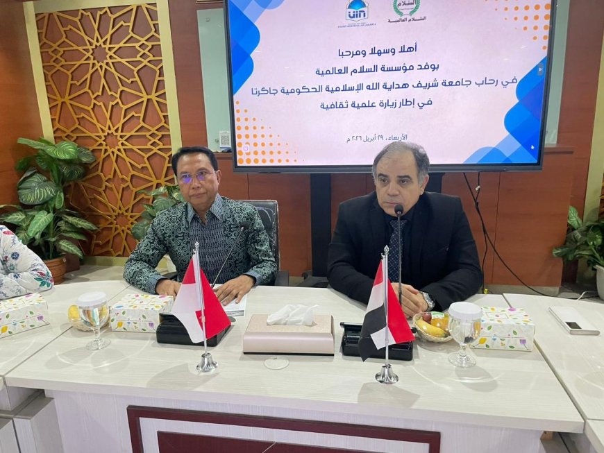 استقبلت جامعة شريف هداية الله الإسلامية الحكومية بالعاصمة الإندونيسية جاكرتا وفد مؤسسة رسالة السلام العالمية برئاسة الكاتب الصحفي مجدي طنطاوي المدير العام للمؤسسة ، في زيارة مهمة تأتي ضمن جهود المؤسسة لتوسيع حضور مشروعها الفكري القائم على ترسيخ قيم السلام، وتعزيز الوعي الحضاري، وبناء جسور التفاهم بين الشعوب وتعزيز الشراكات الأكاديمية ذات البعد الإنساني والفكري .