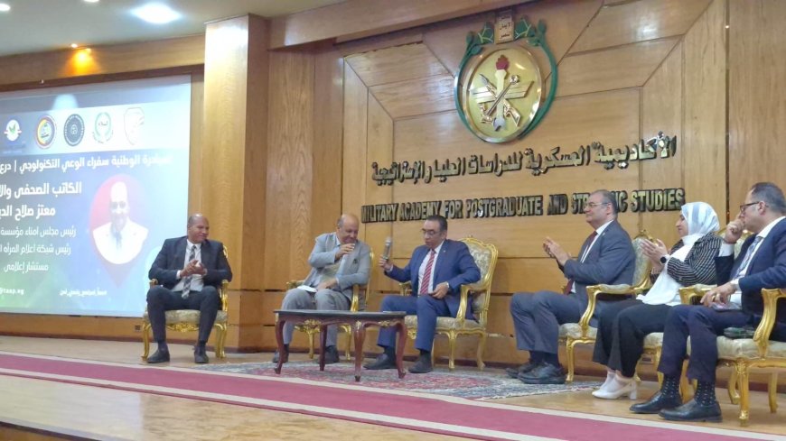 جاء ذلك خلال انعقاد ندوة المبادرة الوطنية “سفراء الوعي التكنولوجي – درع مصر الرقمي”، بالأكاديمية العسكرية للدراسات العليا والإستراتيجية