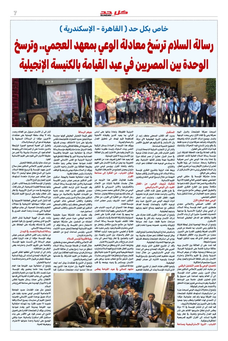 بالعدد مقال نوعي للمدير العام لمؤسسة رسالة السلام العالمية الكاتب الصحفي الأستاذ مجدي طنطاوي حول وعي النهاية الحقة