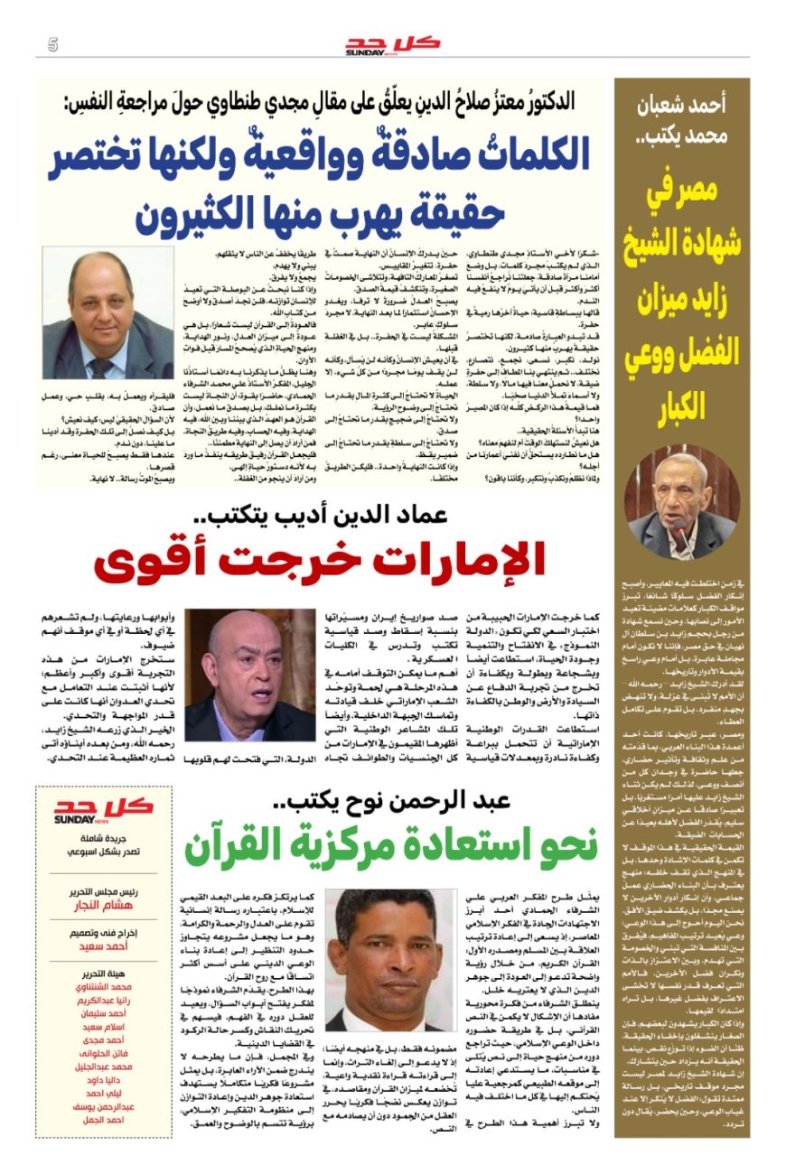 بالعدد مقال نوعي لرئيس مجلس أمناء مؤسسة رسالة السلام العالمية بالقاهرة الخبير الإعلامي الدكتور معتز صلاح الدين بعنوان حول مراجعة النفس الصادقة