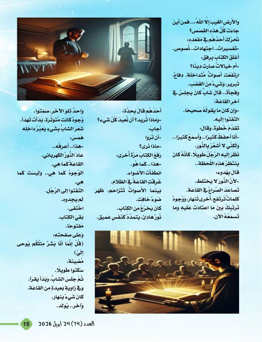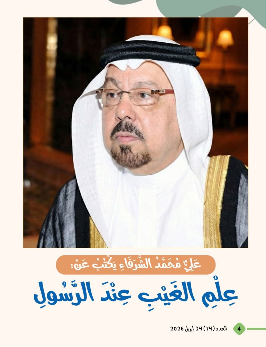 تصدر العدد مقال الكاتب والمفكر الكبير الأستاذ علي محمد الشرفاء الحمادي بعنوان (علم الغيب عند الرسول)
