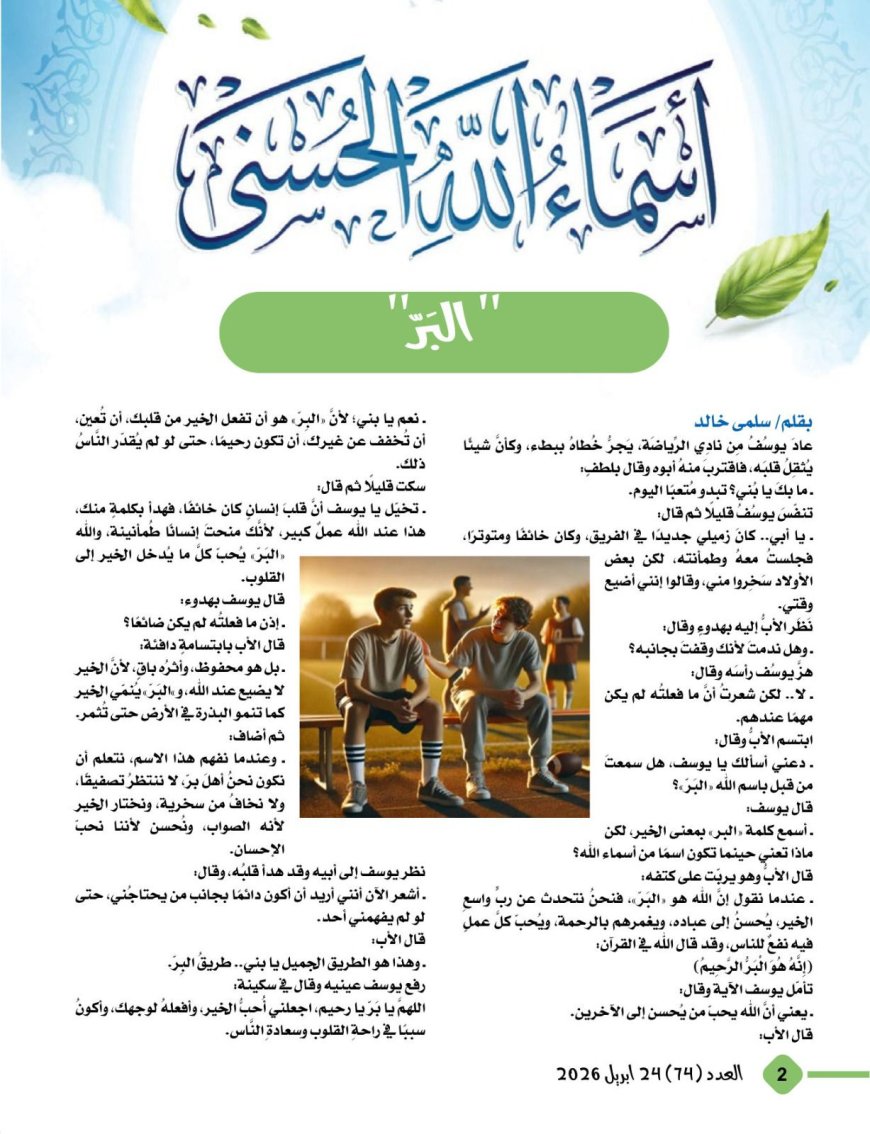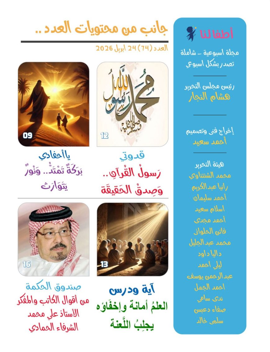صدر اليوم الجمعة ٢٤ أبريل ٢٠٢٦م العدد ٧٤ من مجلة أطفالنا المتخصصة التي تصدر عن مؤسسة رسالة السلام العالمية