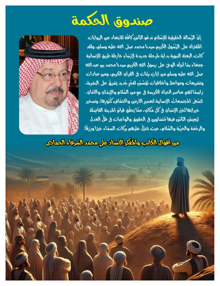 وفى فقرة صندوق الحكمة مقولة ملهمة جديدة من أقوال الكاتب والمفكر الكبير الأستاذ علي محمد الشرفاء الحمادي