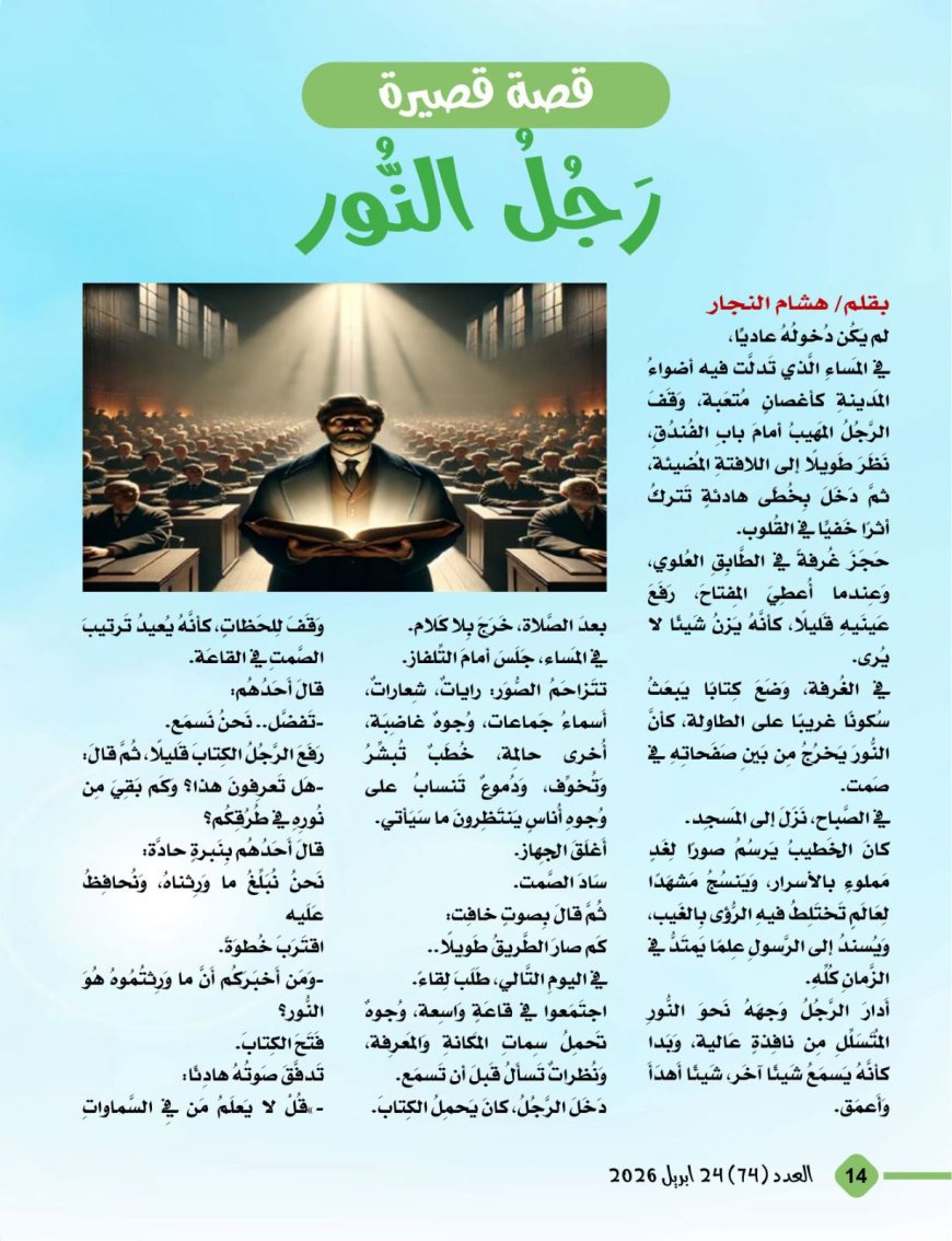 بفقرة قصة قصيرة قصة قصيرة جديدة بقلم رئيس مجلس تحرير المجلة الكاتب الصحفي والأديب هشام النجار بعنوان (رجل النور)